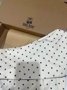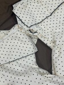Giữa bản giao hưởng sắc trắng tinh khôi và họa tiết chấm bi, Ngọc Nhiên Dress xuất hiện như một nốt nhạc thanh mảnh nhưng đầy cuốn hút. Đó là sự pha trộn hài hòa giữa vẻ đẹp cổ điển và tinh thần hiện đại, khi nét nữ tính được nâng niu bằng phom váy xòe trẻ trung, còn chi tiết lệch vai khéo léo tạo nên dấu ấn thời trang không thể rời mắt.